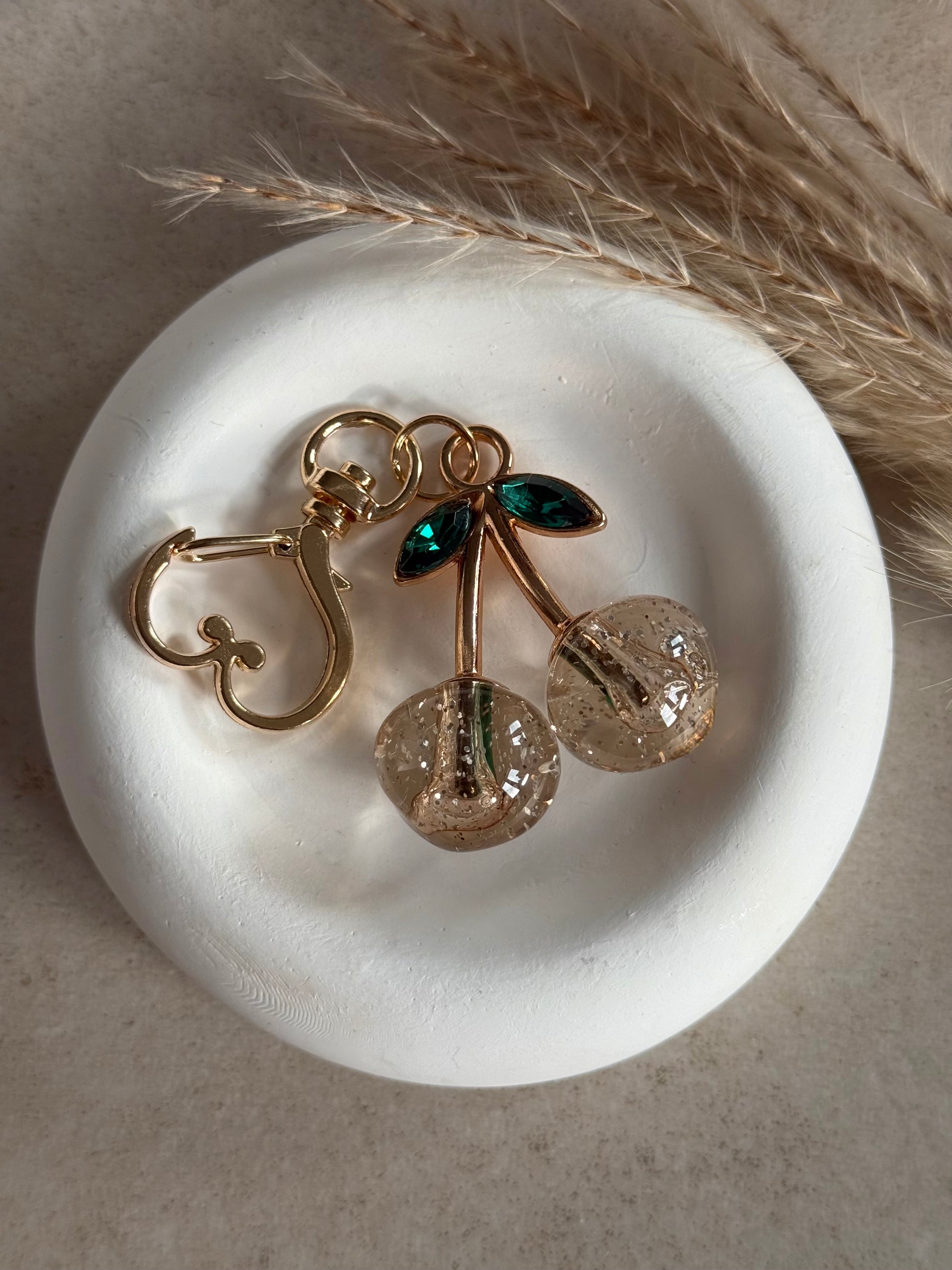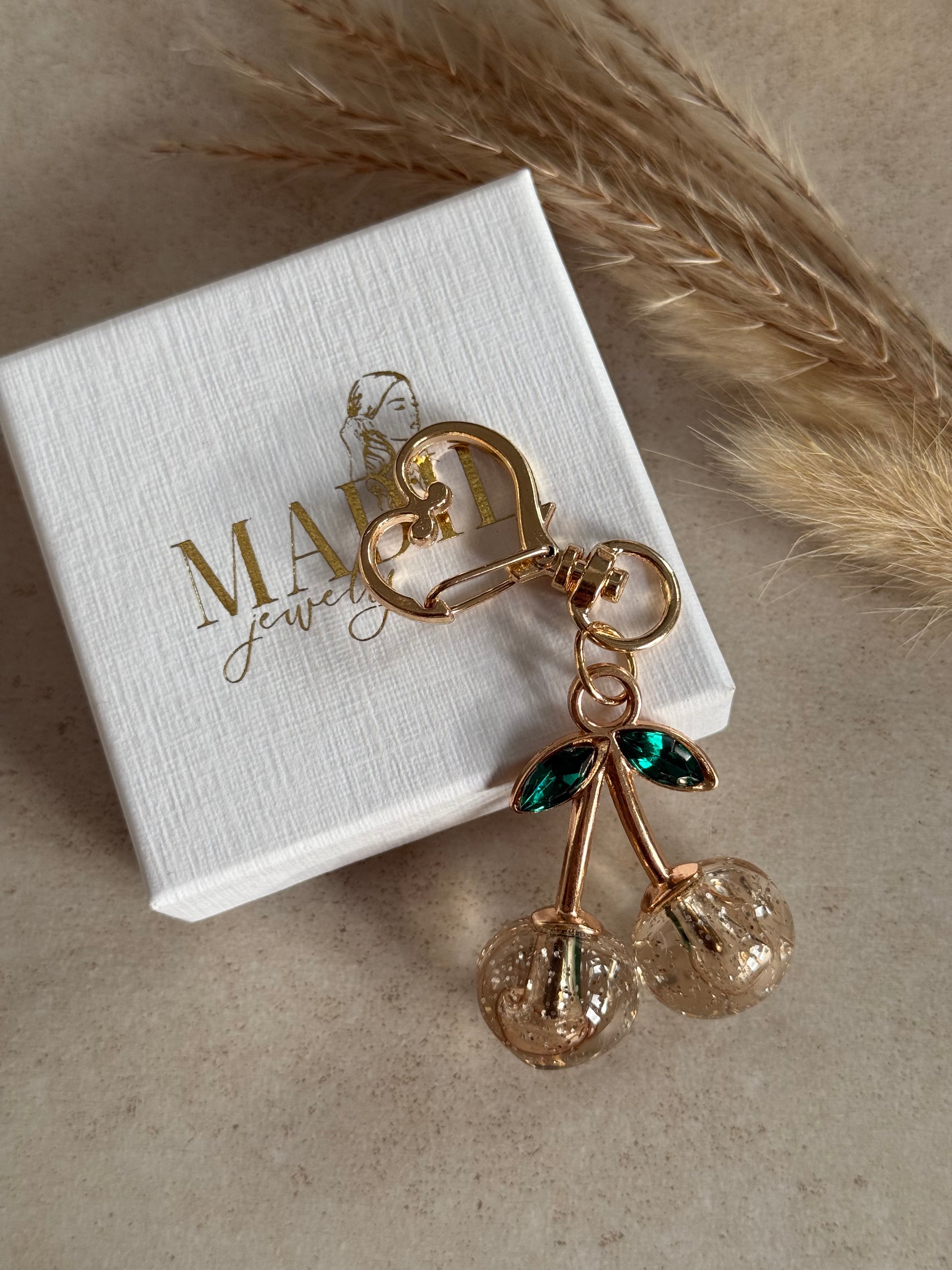 Unser Cherry Charm Schlüsselanhänger verleiht deinem Alltag Farbe, Glanz und gute Laune.