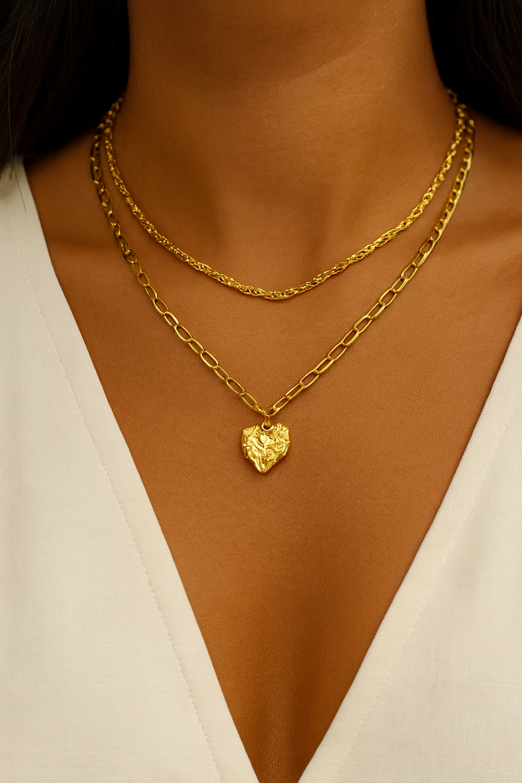 - Design: Zweier Halskette mit strukturiertem Herzanhänger