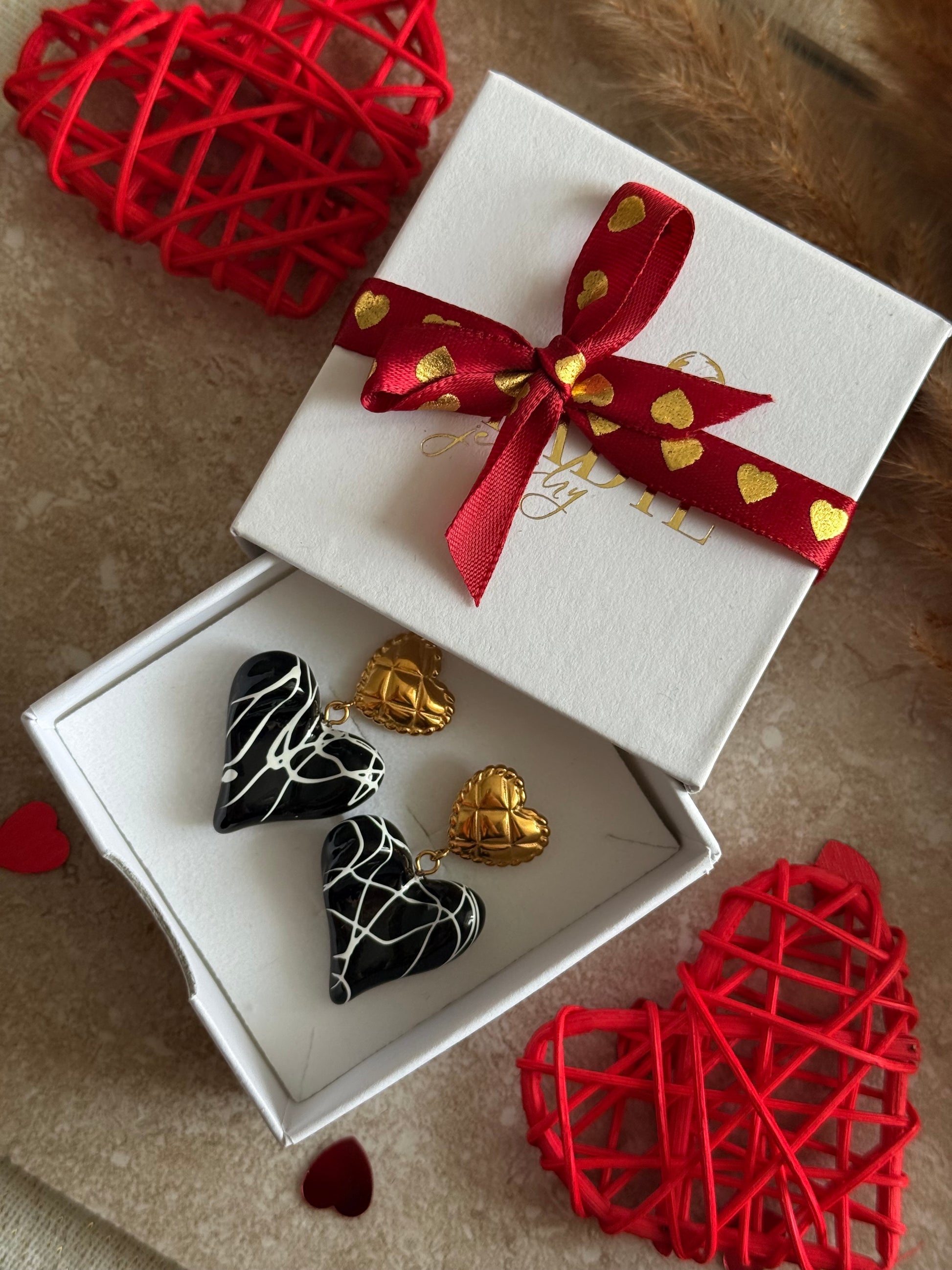 - Design: Zweiteilige Herz-Ohrringe mit Hochglanz-Finish