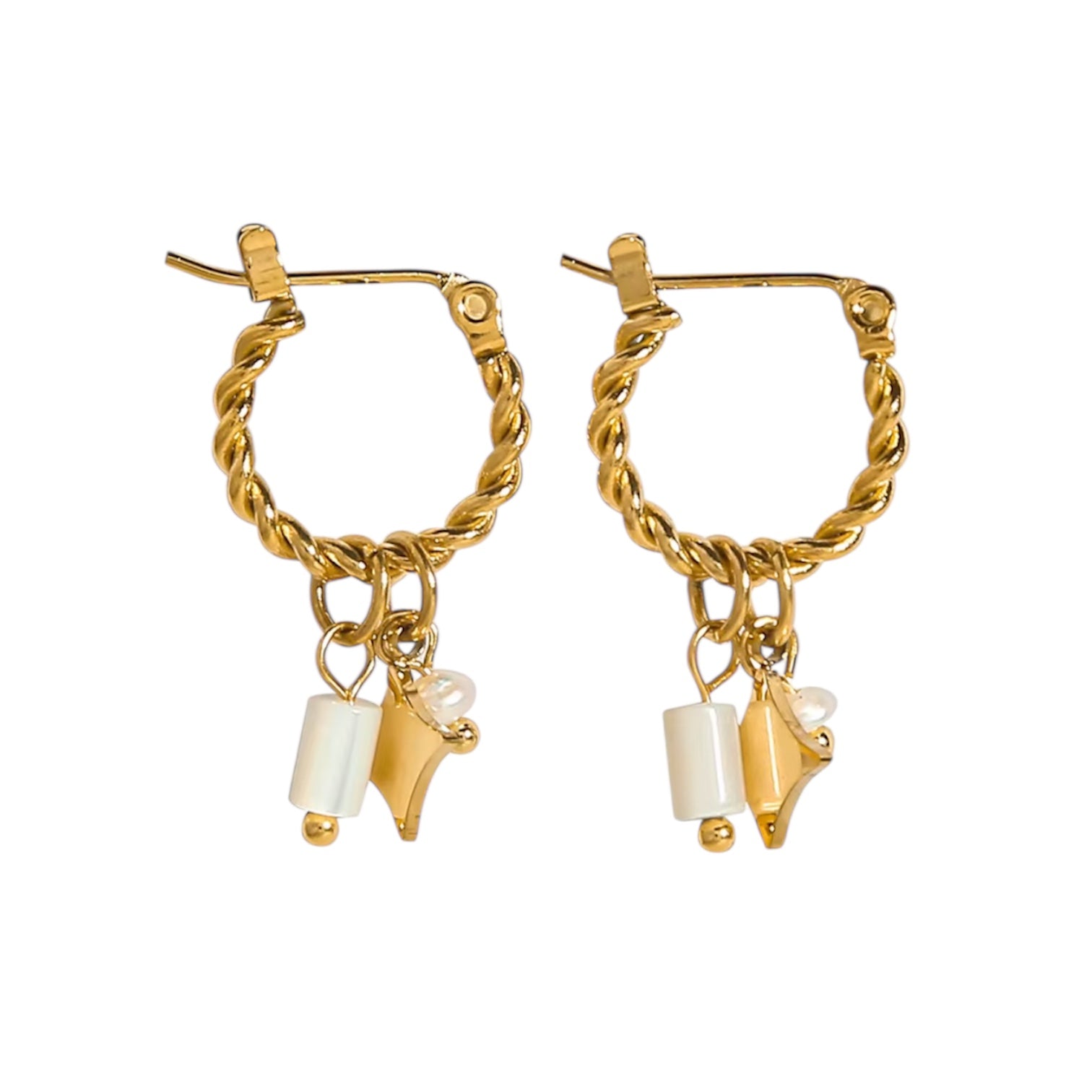 - Design: Gedrehte Mini-Creolen mit beweglichen Anhängern