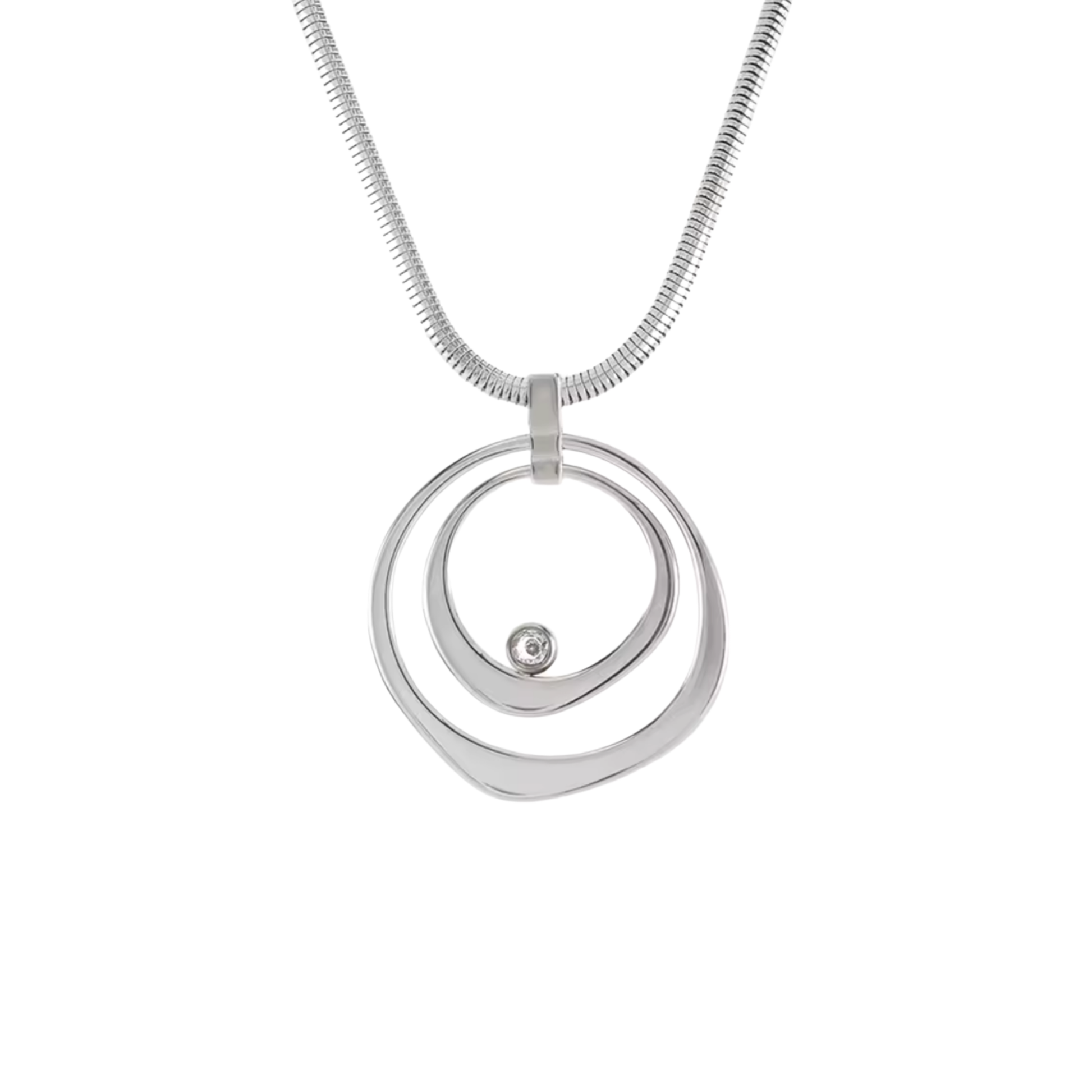 - Anhänger: Moderner Doppelring mit funkelndem Zirkonia-Stein