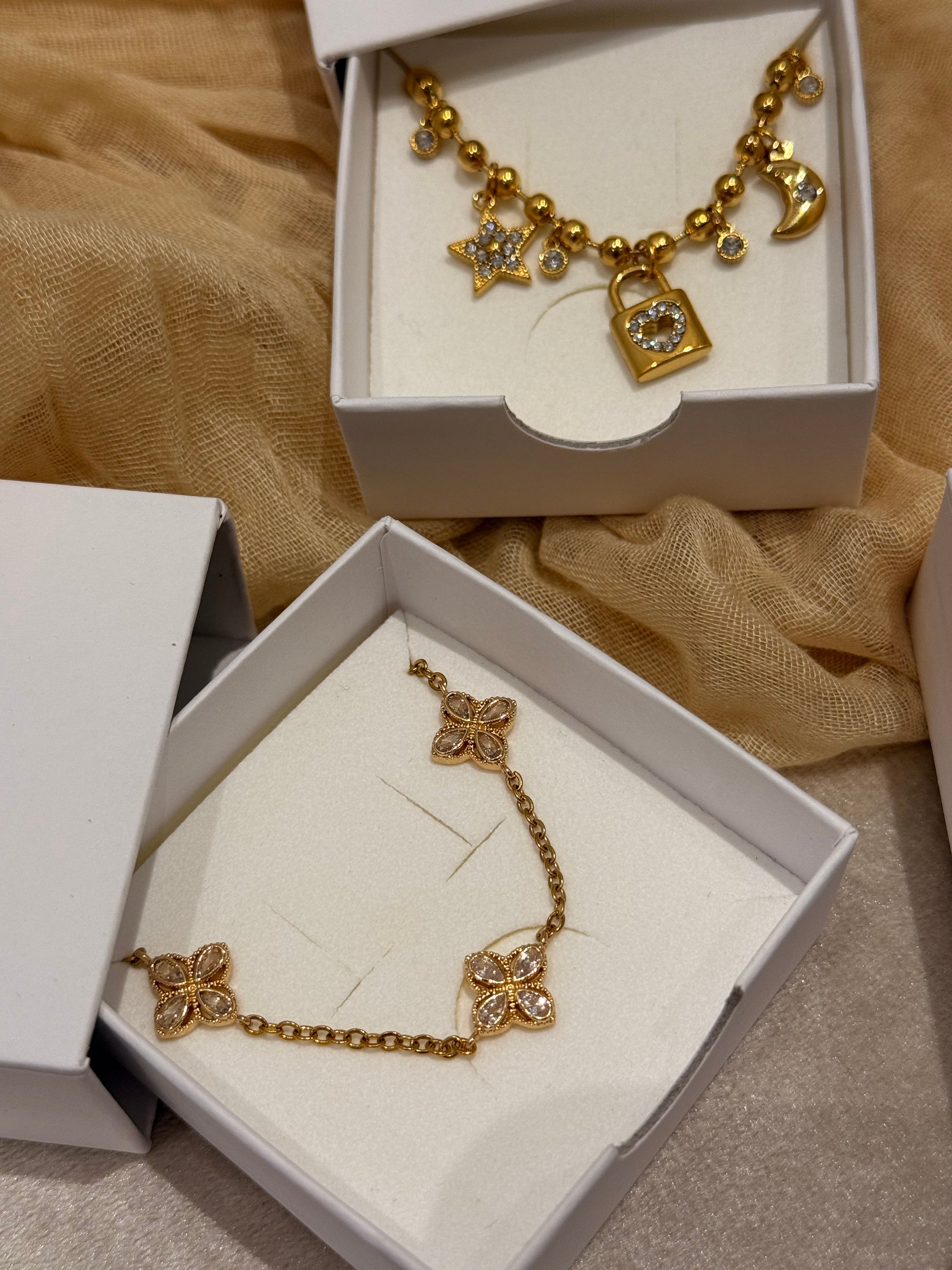 Das Flower Chain Armband peppt jeden Style mit einer Prise Eleganz auf. Die niedlichen Blumen-Details bringen einen schimmernden Hauch mit sich und machen das Armband zum ultimativen Sidekick â egal ob du im Alltag oder bei besonderen Anlässen glänzen mĂśchtest!