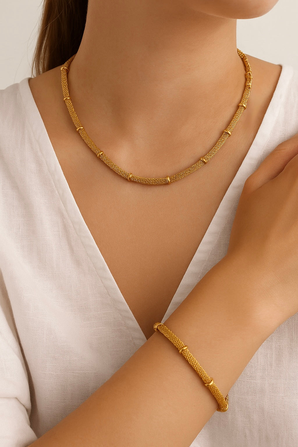 - Design: Feines, geflochtenes Kettenmuster mit edlen Akzenten