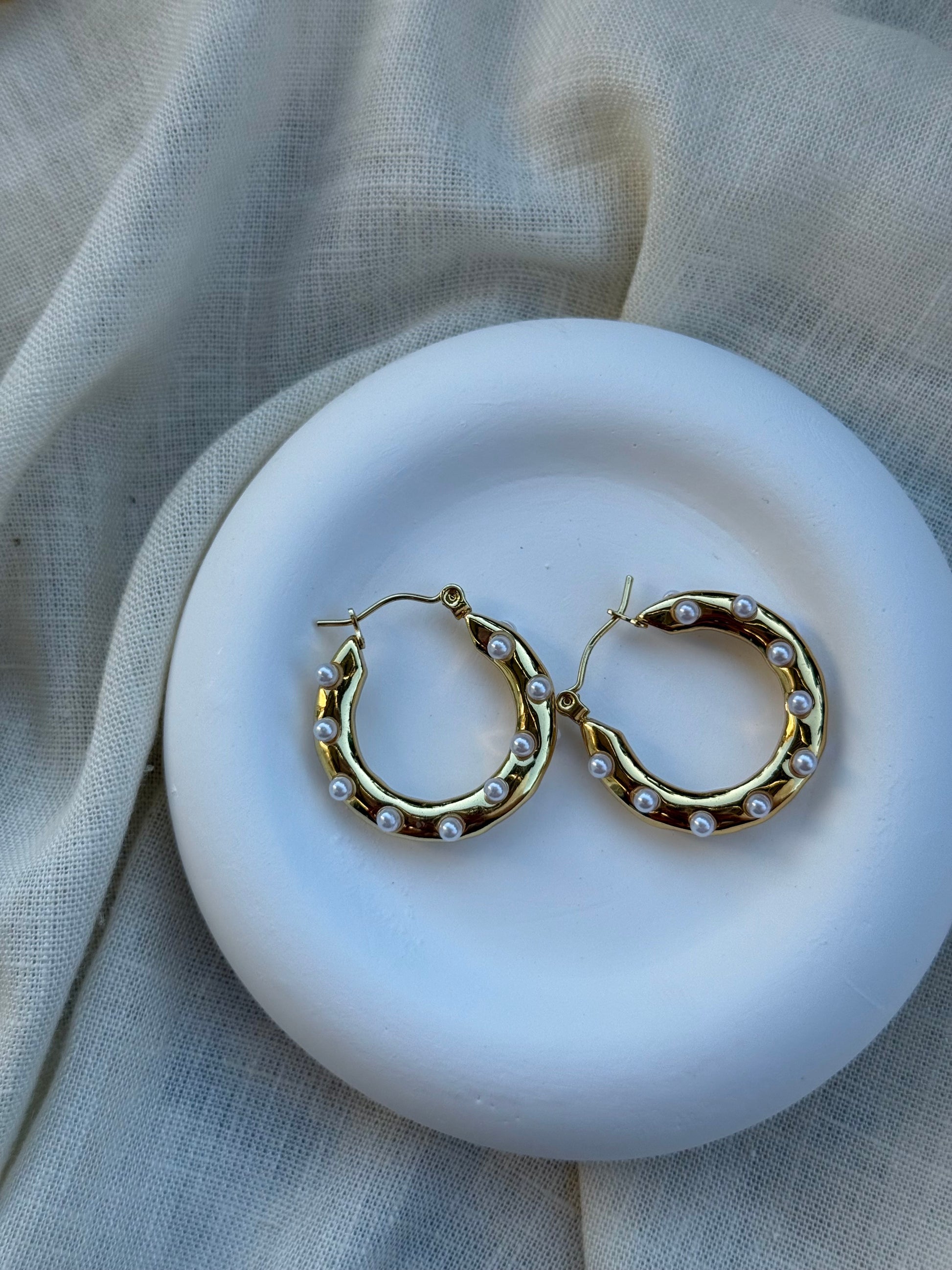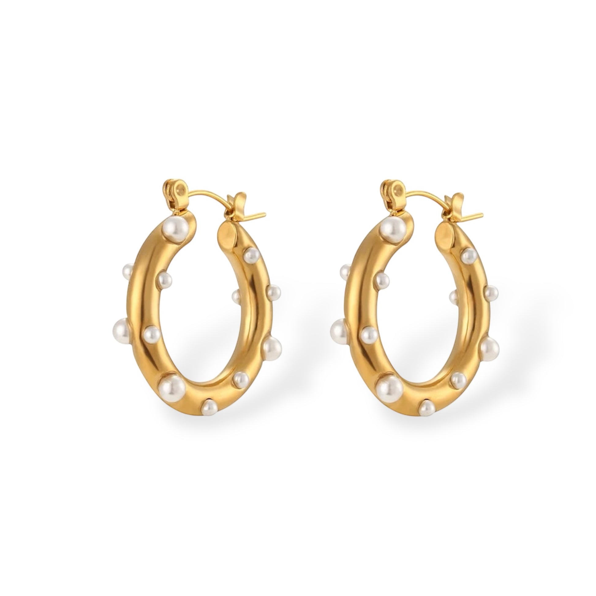 - Design: Runde Creolen in gold mit feinen weißen Perlendetails