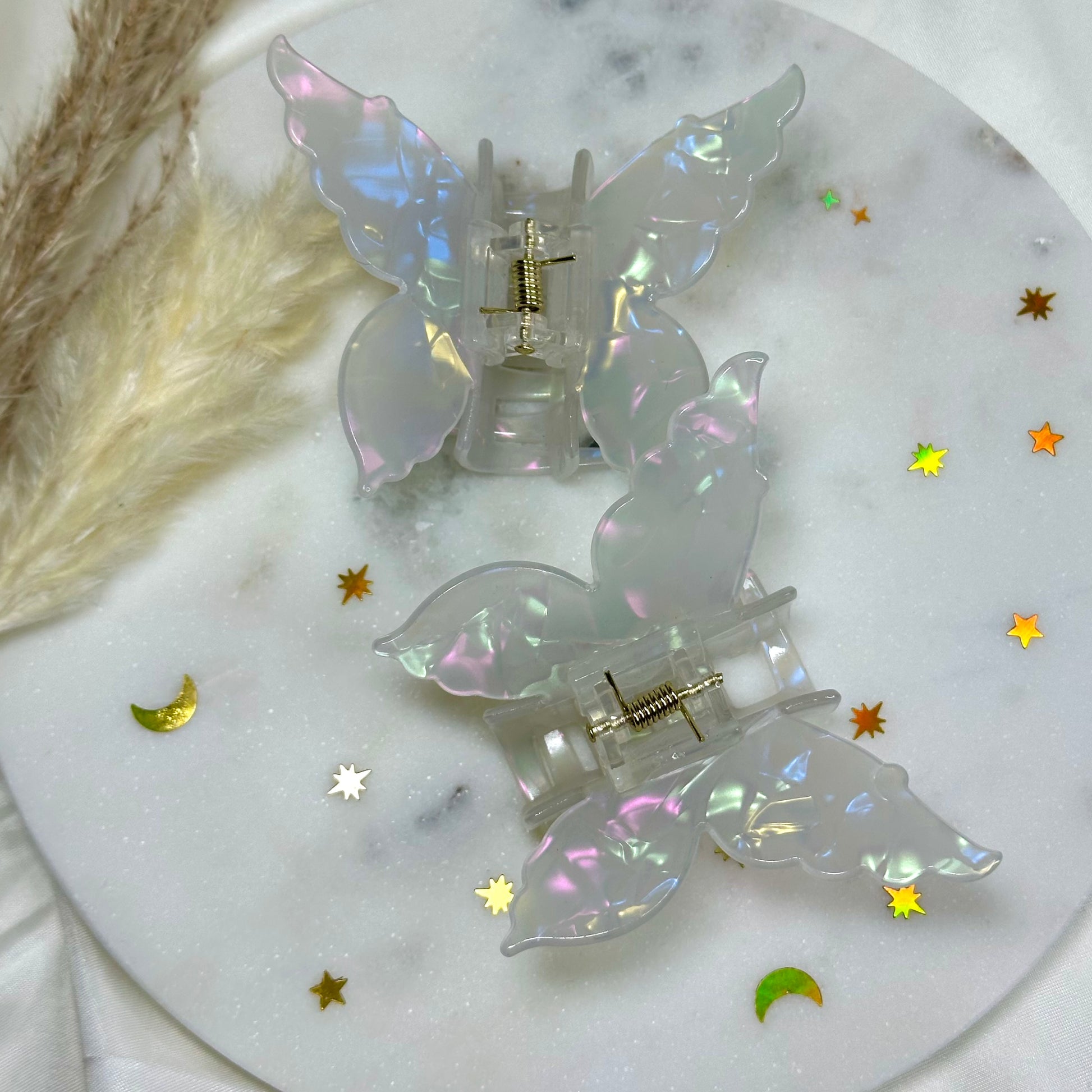 Verleihe deinem Look einen Hauch von Eleganz mit unserer Schmetterlings-Haarspange aus hochwertigem, perlmutt-schimmerndem Material. Das detailreiche Design kombiniert filigrane Ästhetik mit einer robusten, goldfarbenen Mechanik, die perfekten Halt bietet. Perfekt für besondere Anlässe oder um deinem Alltagsstil das gewisse Etwas zu verleihen.